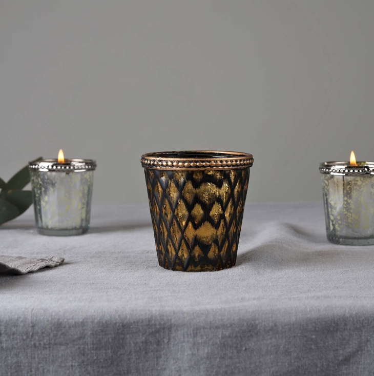 Glass tealight/votive holder look beautiful both with and without a candle glowing inside. It is a perfect addition to any decor. Have a cluster of holders to create a dazzling feel in your home. Stunning for use in living, hallways and outdoor spaces.