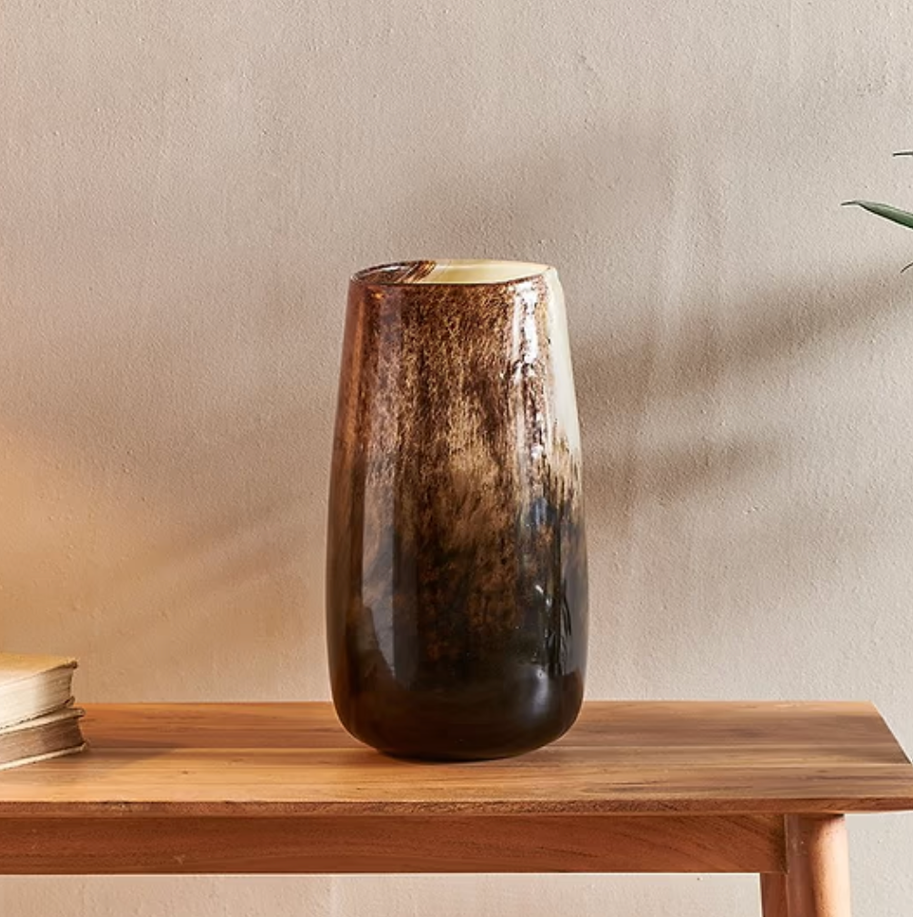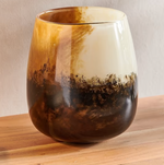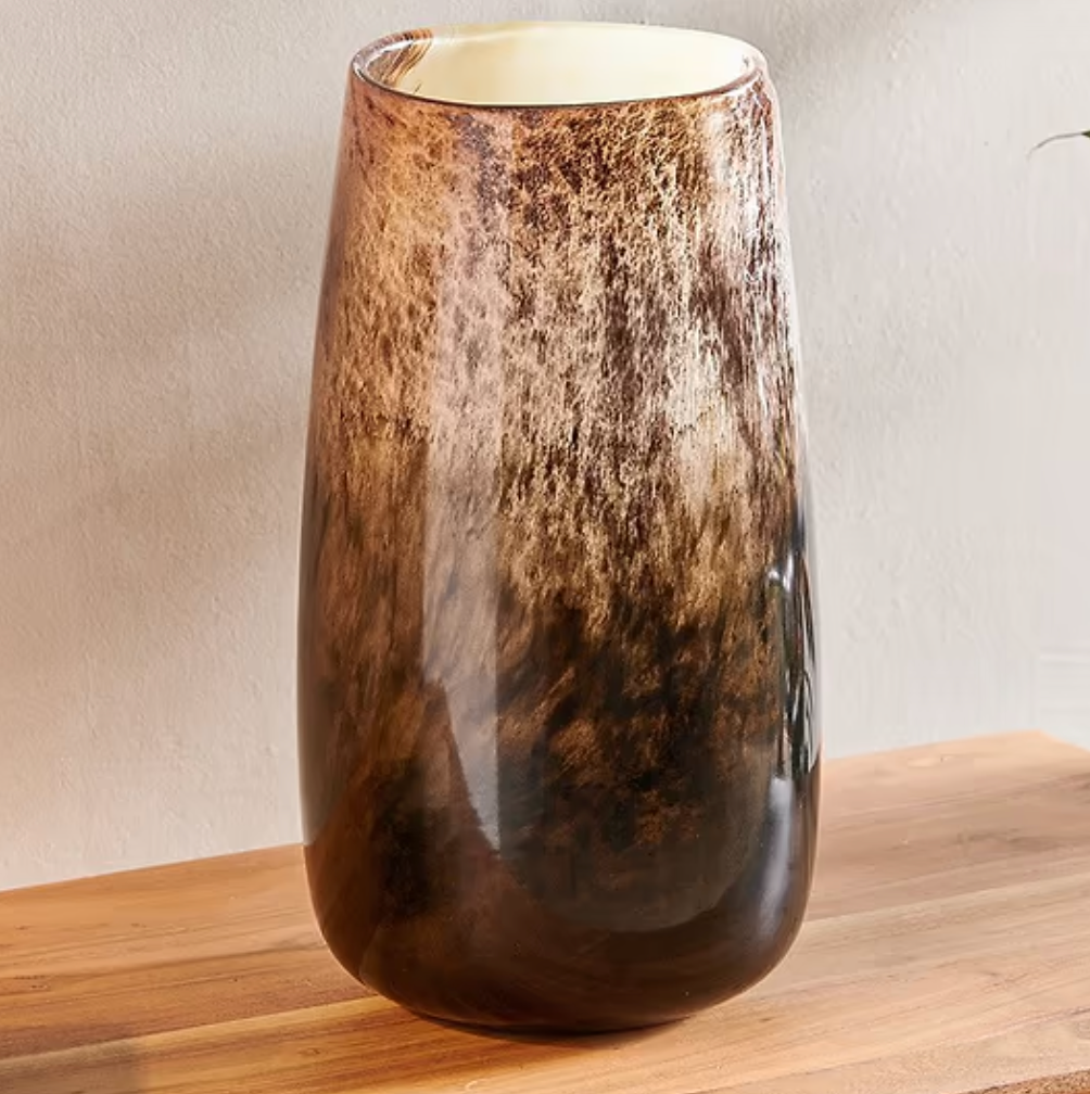 The Ariya multi tone vase collection includes a mix of shapes and sizes that suit a variety of plants and dried flowers. The mix of brown and white adds a sophisticated touch. The vases are made from glass and the exterior is coloured in an irregular blend of colour. No two are the same. Brown is a naturally warm tone and combined with cream it has a fresh appealing look. The Ariya vases make a striking piece of decorative objet as well as a great supporting roll to fresh and dried flowers.