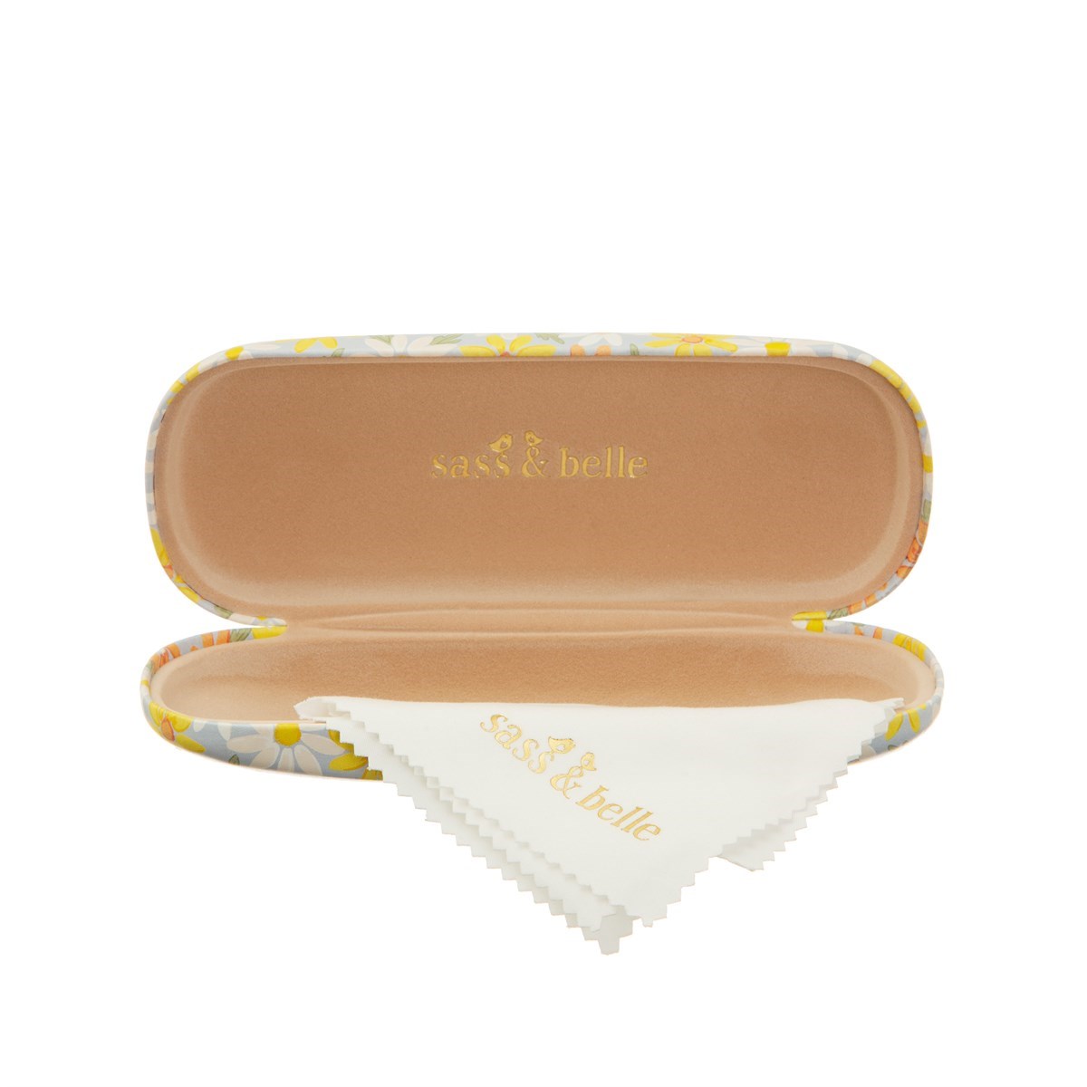 Rise and shine with a ditsy floral print sitting alongside a delicate pastel blue on this pretty glasses case. Complete with a soft interior and cleaning cloth.