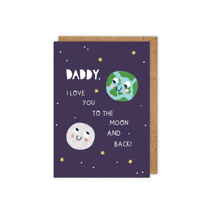 Send your love to the best daddy ever with this cute illustrated Father's Day card reading"daddy: I love you to the moon and back". The perfect card to send from the children- boys and girls alike.